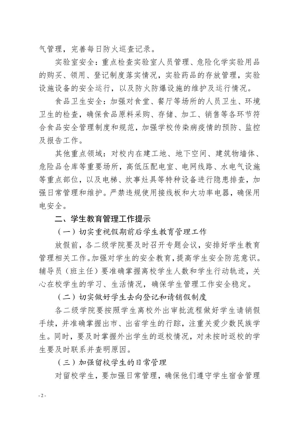 关于做好近期安全及学生管理工作的提示